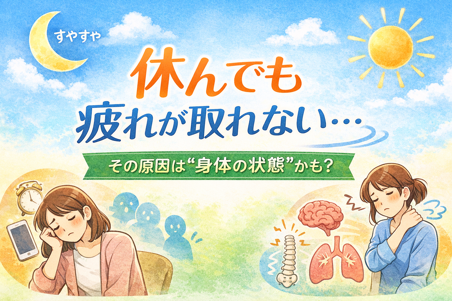 その症状を放置するのは、毎日の疲れがとれない状態で生活を続ける、ということです。逆を言えば、これらの自立神経症状が改善すれば人生の質を上げることができます。