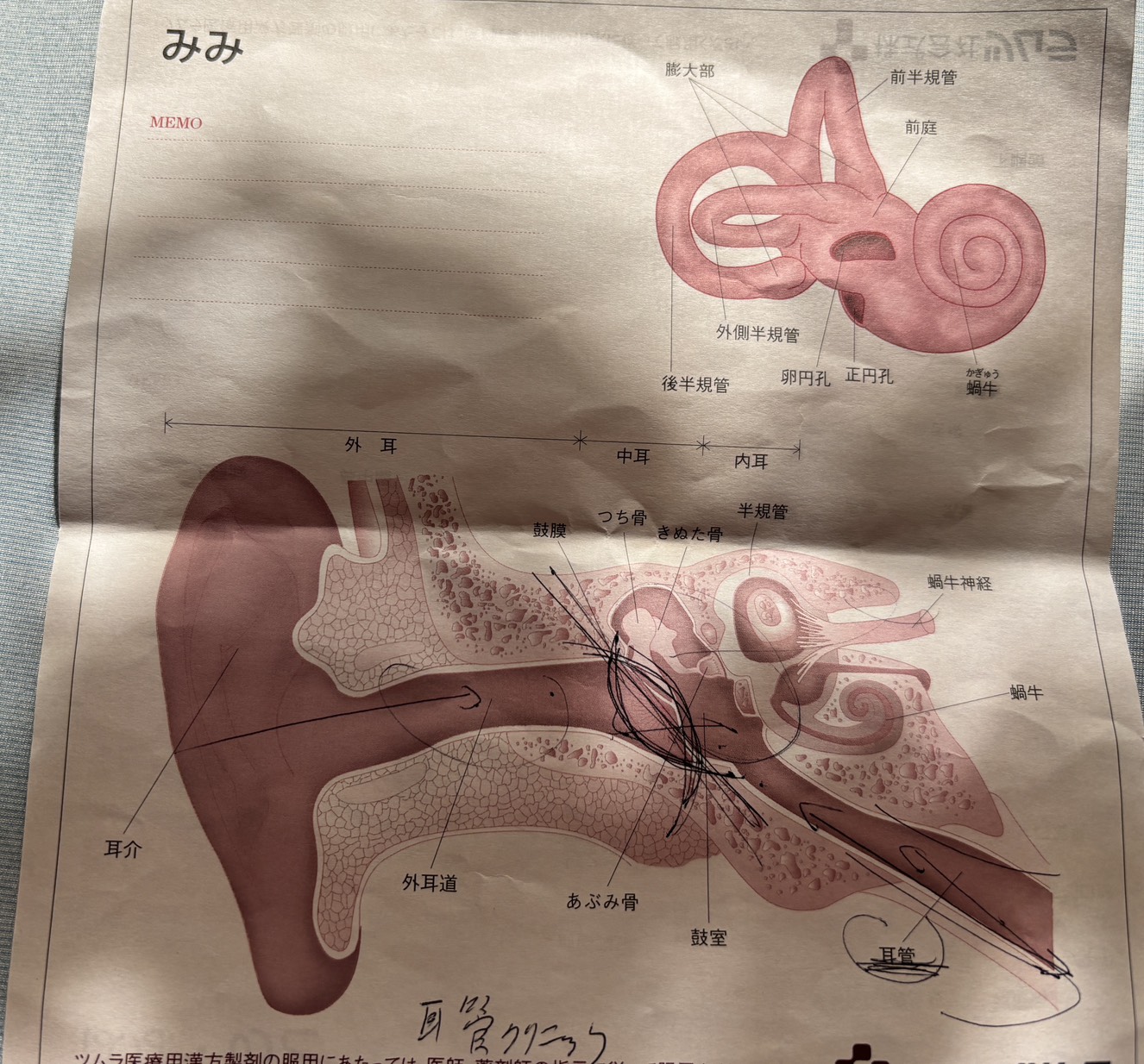 最初は、近所の耳鼻咽喉科へ行きました。耳にも鼻にも鼓膜自体にも異常がなく、原因は不明ということで医師から耳管専門病院へ行くように言われました。